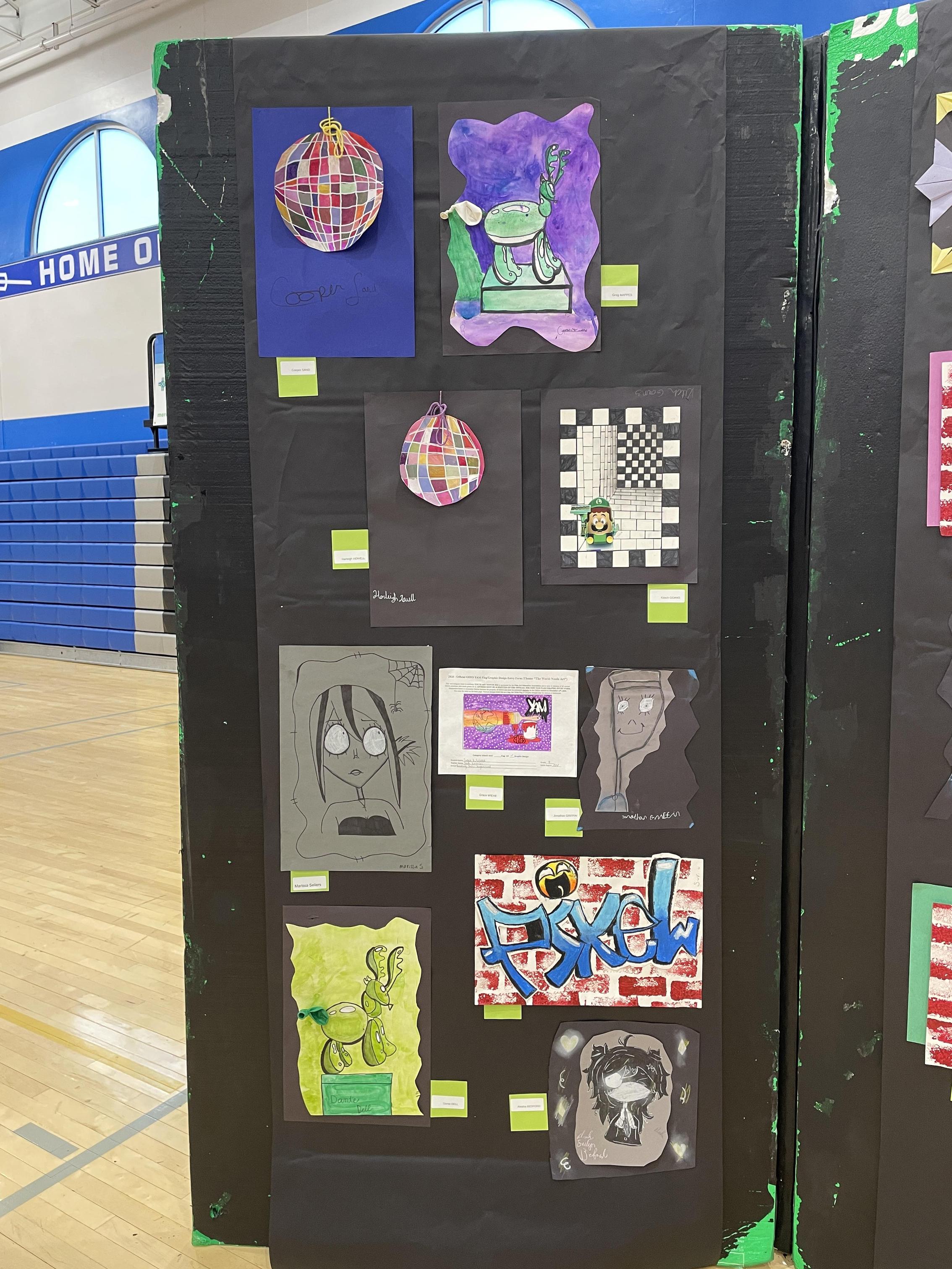 Under the guidance of the fine arts team, including Ms. Laura Freese, Mr. Jeremy Newell, and Ms. Jodi Kessler, students created a wide variety of artwork. The show included colorful name designs, detailed drawings, origami pieces, and mixed media projects. Each piece showed the unique style and voice of the student who created it.